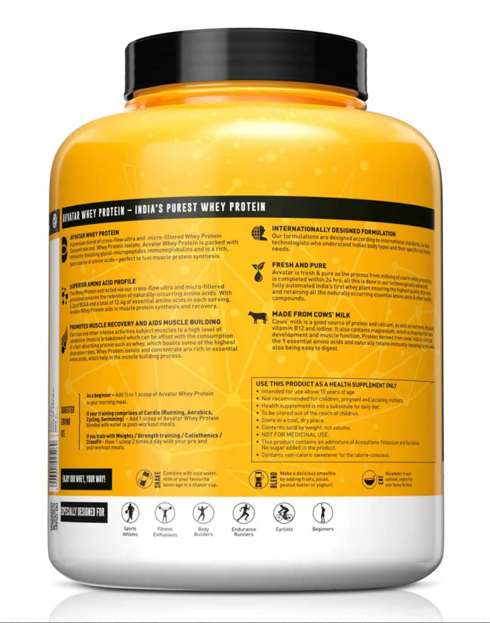 Unlock your true potential with Avvatar Whey Protein, a powerhouse packed with an impressive 28 grams of protein per 35 grams of rounded scoop.