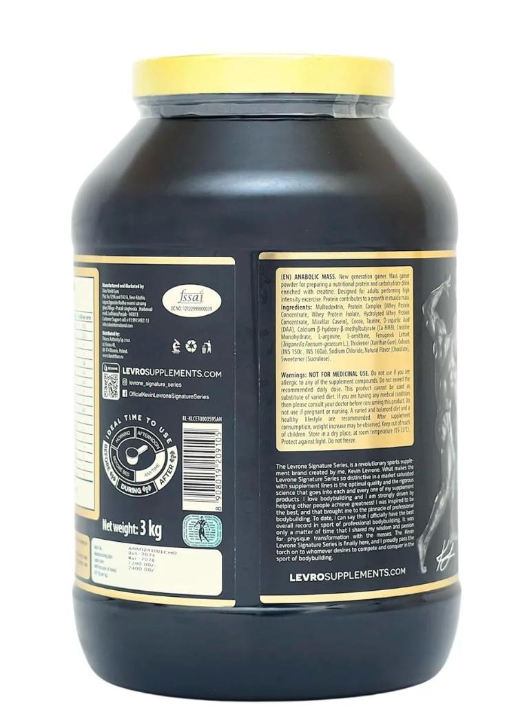 Kevin Levrone ANABOLIC MASS Gainer – New Generation Mass Gainer with Protein Complex, Carbohydrates, Creatine – 100g Serving, 3kg, Chocolate Flavor – For High-Intensity Exercise
