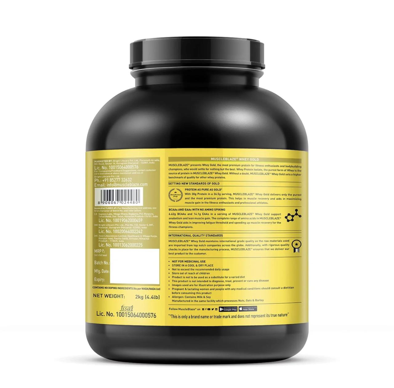 MuscleBlaze Whey Gold 100% Whey Protein Isolate – 2kg